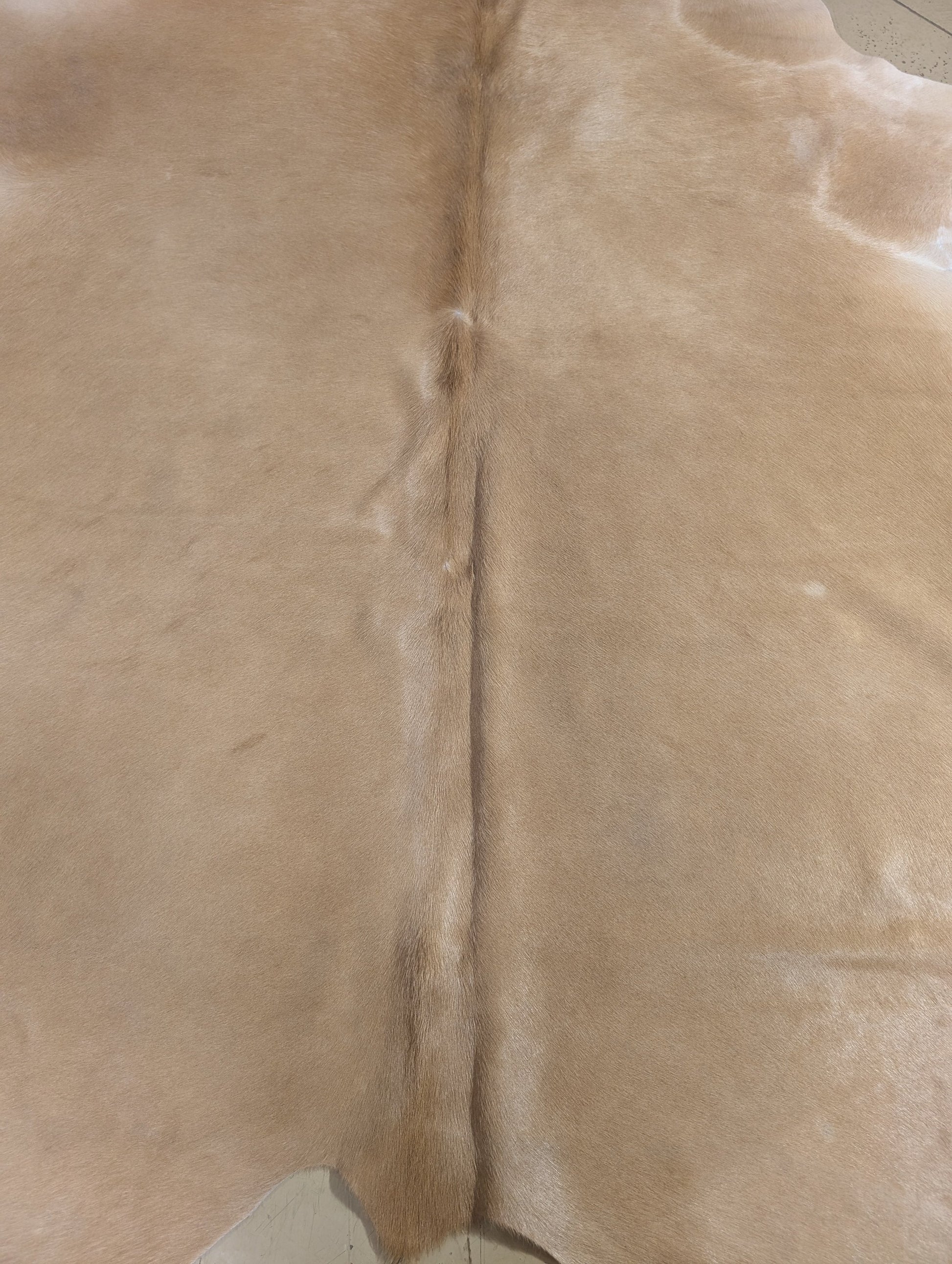 Heidi is a blonde colored cowhide and she measures at 98 x 91 x 69 inches.